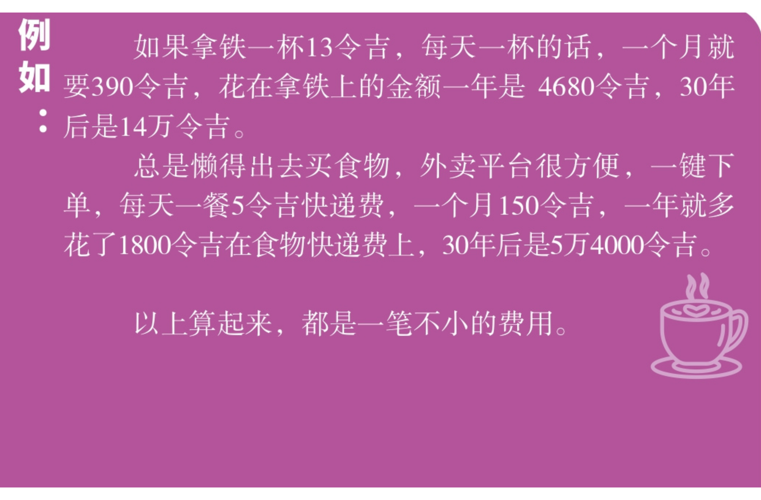 生活中有一些不必要的支出,让我们总是存不了钱,或是失去让钱有更大效益的机会。也许你需要认识“拿铁效应”!