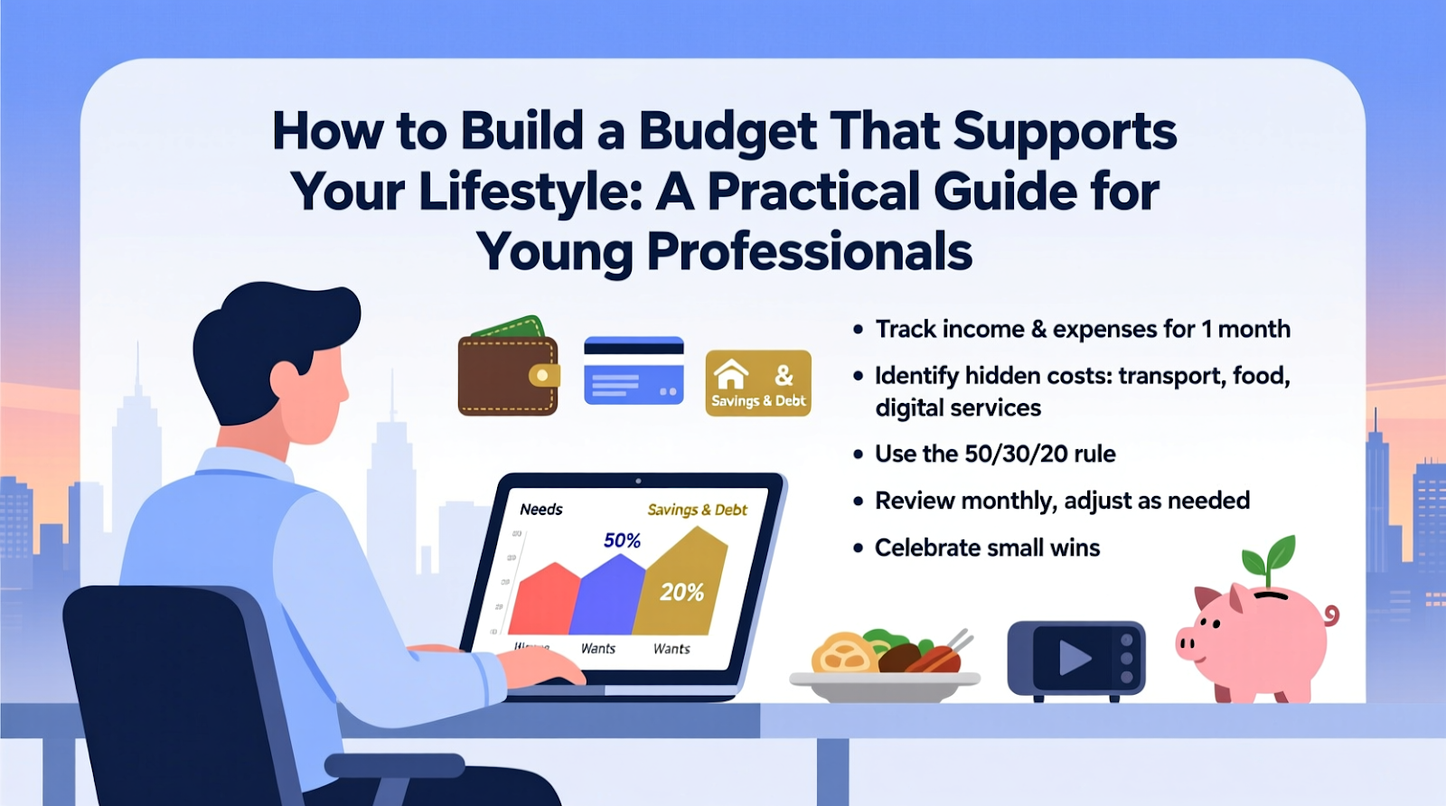 A structured budget gives you control over your money. It supports better spending decisions and reduces financial stress. Track your income and expenses for at least one full month. You need a clear view of where your money goes. Many young adults spend more than expected on transport, food, subscriptions and digital services. Tracking helps you identify patterns and adjust them. A practical method used by many professionals is the fifty-thirty-twenty allocation. Fifty per cent for needs, thirty per cent for wants and twenty per cent for savings and debt payments. This method is simple and adaptable.